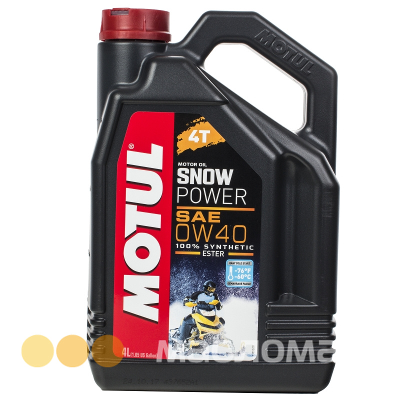 100% синтетическое моторное масло на основе сложных эфиров, разработано с целью соответствия самым жестким требованиям мощных 4-х тактных двигателей снегоходов. Обеспечивает быстрый выход на обороты максимальной мощности двигателя. Превосходно защищает двигатель при работе на высоких оборотах двигателя и температурах. Класс вязкости SAE 0W-40 соответствует последним требованиям производителей снегоходной техники и обеспечивает легкий запуск двигателя в условиях полярного холода.