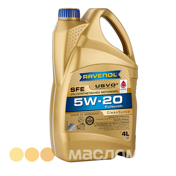RAVENOL SFE SAE 5W-20 – полностью синтетическое моторное масло на основе полиальфаолефинов (ПАО), изготовленное с применением технологий USVO® и CleanSynto® для легковых бензиновых и дизельных моторов с и без турбонаддува и прямым впрыском топлива.
