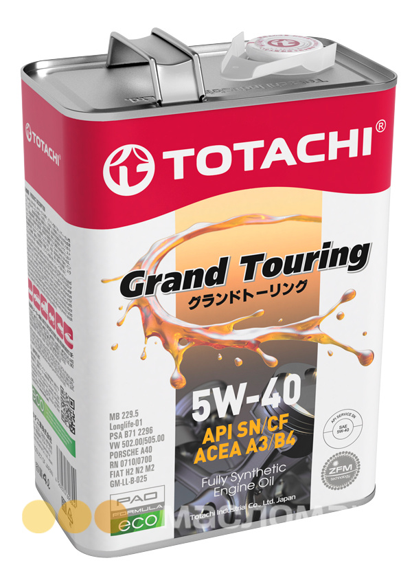 Grand Touring 5W-40 – полностью синтетическое (ПАО) моторное масло с высокими рабочими свойствами, разработанное для применения в современных бензиновых и дизельных двигателях, которым требуется масло с Категориями API SN/CF, ACEA A3/B3 или A3/B4. Продукт обеспечивает превосходную толщину смазочной пленки для оптимальной защиты двигателя от износа при низких и высоких рабочих температурах за счет отличных низкотемпературных характеристик синтетических базовых масел. Моторное масло Grand Touring 5W-40 минимизирует отложения на двигателе и сокращает уровень эмиссии при тяжелых нагрузках и в режиме вождения «старт-стоп». Моторное масло Grand Touring 5W-40 производится на основе уникальной антифрикционной технологии ZFM™ (Zero Friction Molecular). Это позволяет значительно снизить трение и износ высоконагруженных деталей двигателя, которые подвергаются интенсивным нагрузкам и высоким рабочим температурам. Продукт обеспечивает чистоту двигателя и эффективно предотвращает образование лаков, что делает ег