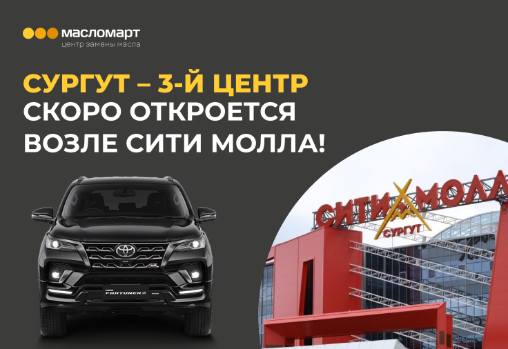 Совсем скоро на парковке ТРЦ «Сургут Сити Молл» откроется новый, третий центр замены масла Масломарт!